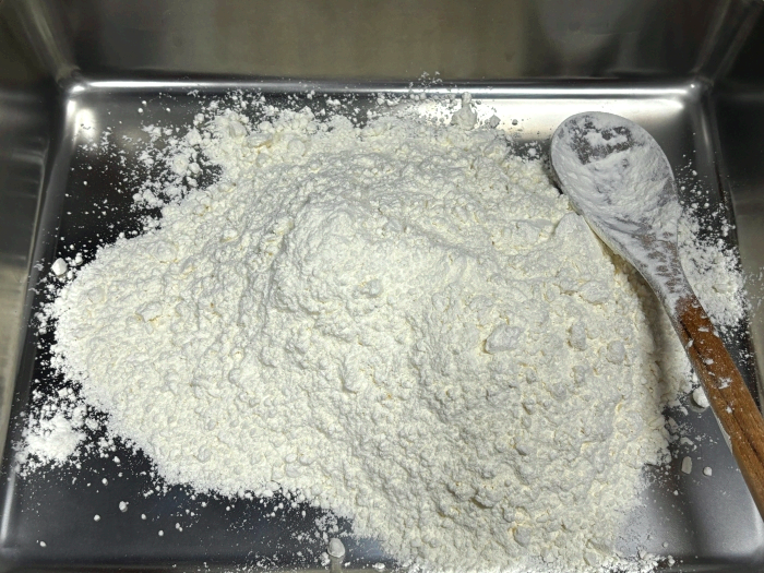 6. 가리비 알맹이를 먼저 먹은 후, 가리비 찐 물육수칼국수 끓여드시면 정말 맛있어서 칼국수 레시피도 함께 알려드릴게요. 먼저 칼국수 반죽부터 시작할게요. 분량의 밀가루 준비해 주세요.