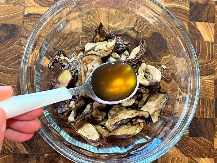 3. 가지는 말린 정도에 따라 불리는 시간을 가감하여야 하지만 보통 30분에서 한 시간 이내로 물에 넣은 채로 불려 준비해 주세요.