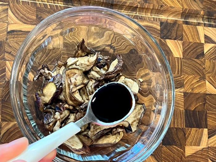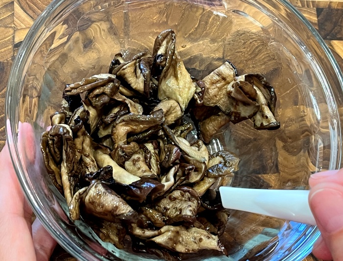 4. 불려진 가지는 깨끗하게 헹궈내어 손으로 물기를 꼭 짜서 준비해 주세요.