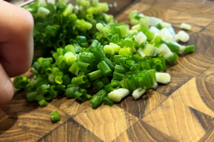 2. 쪽파는 완성된 밥에 고명으로 사용할 수 있도록 잘게 썰어서 준비해 주세요.