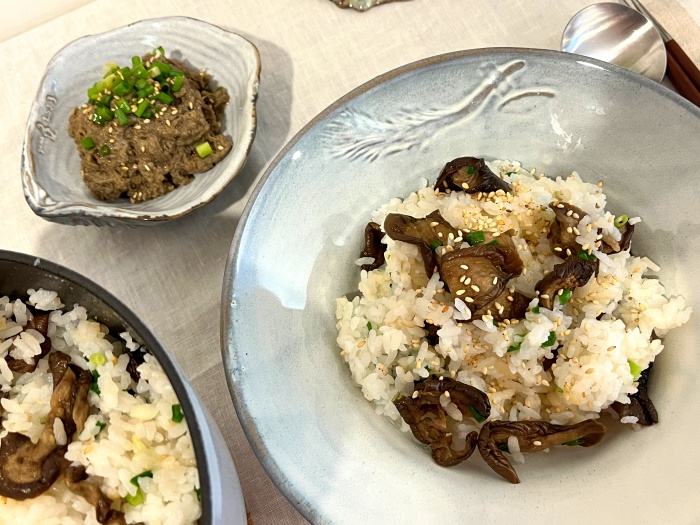 ※ 금방 완성이 되었어요, 가지 솥밥에 고기를 볶아 넣기도 하고 하지만 거의 재료를 불리기만 해서 조리과정을 최소로 줄여 쉽고 간편하게 완성하는 방법인데요. 가지의 식감은 쫄깃하게, 가지 본연의 달큼한 맛과 영양도 살려서 조리하는 방법이에요.