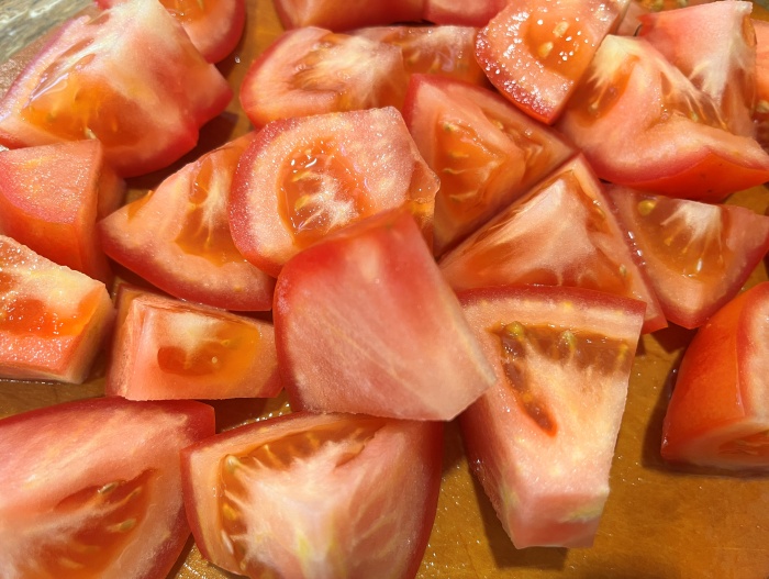 2. 토마토는 큼직큼직하게 썰어준비해 주세요.