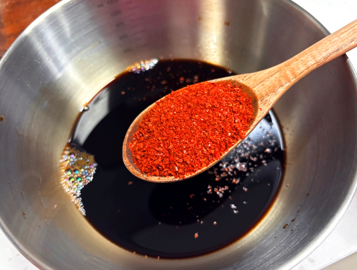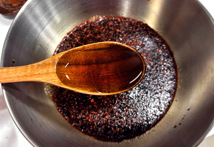 11. 그리고 마지막으로 설탕도 넣어 양념의 간이 고루 잘 섞이도록 녹여서 간을 한번 보세요. (전체적으로 짜지 않게 간을 했기에, 취향에 따라 부족한 간은 조금씩 추가하세요, 모두가 맛있게 먹어야 하잖아요^^)