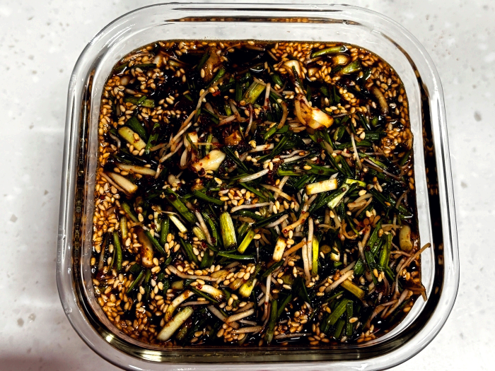 12. 완성된 양념장에 이제 앞서 준비해 놓은 다진 달래를 넣어주세요.