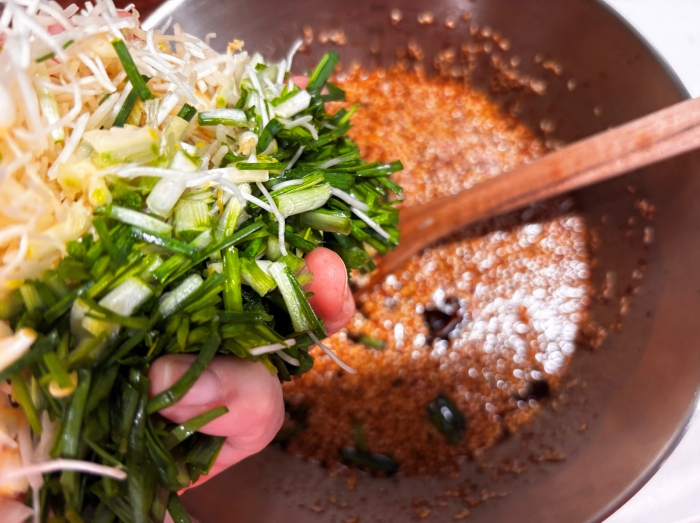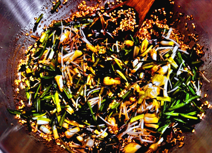 13. 달래를 넣어서 고루 잘 섞어주시면 드디어 맛있는 달래장 완성!