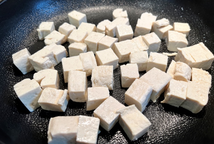 노릇 노릇 두부 큐브가 잘 만들어졌어요.