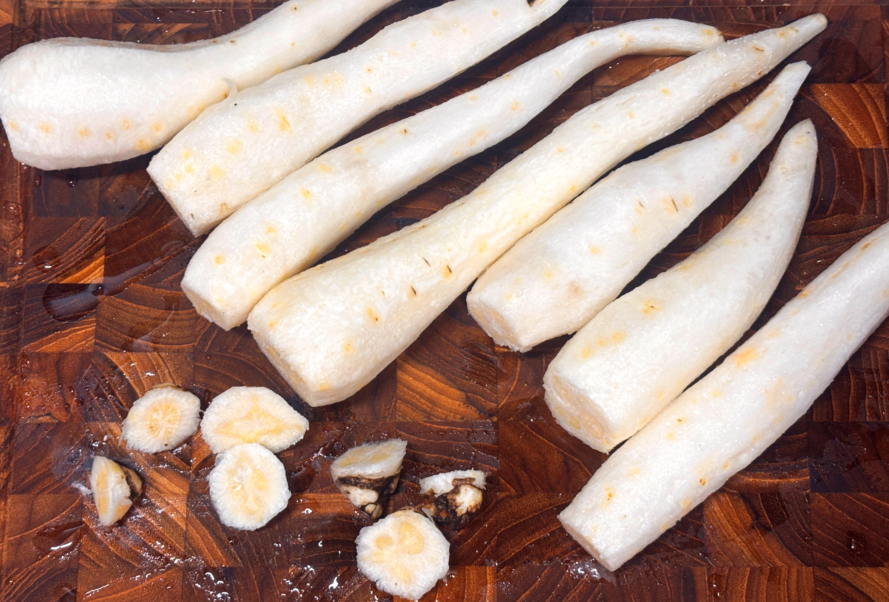 3. 더덕의 꼭지 부분은 잘라내서 손질해 주세요.