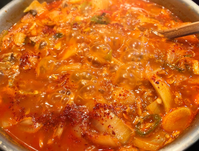 13. 김치찌개는 푹 끓여야 맛이 있어요! 최소 15분에서 20분 바글바글 푹 끓여주세요. 완성!