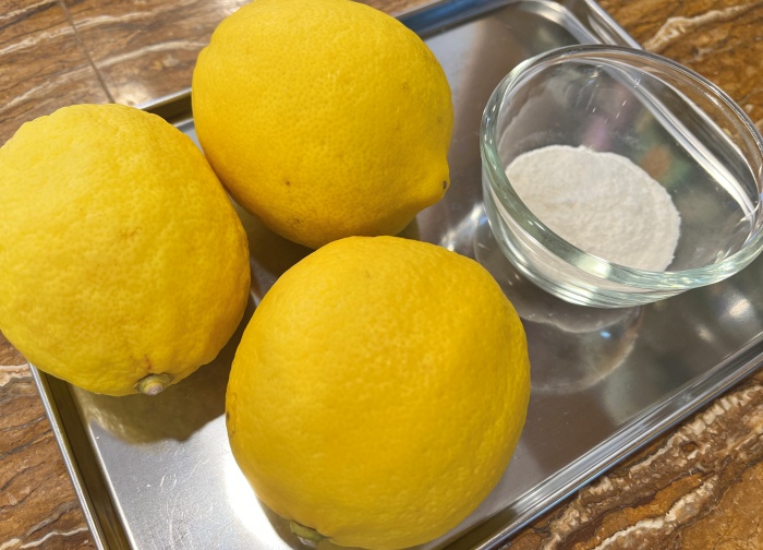 1. 레몬은 베이킹파우더나 굵은소금을 뿌려서 문질러 닦아 세척해 주세요.