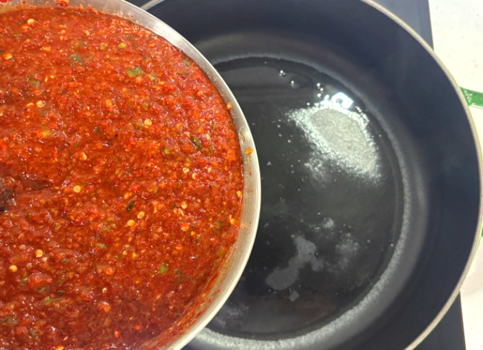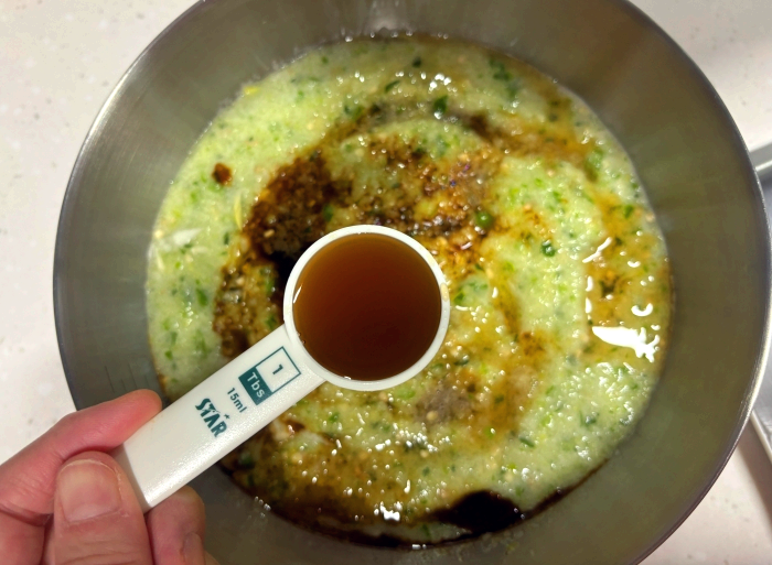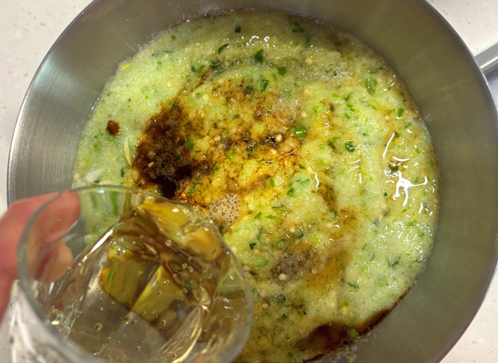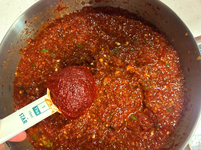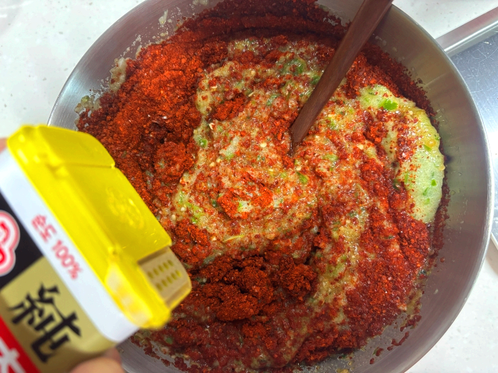 8. 이제 갈아준 채소양념을 베이스로 준비한 분량의 양념재료 모두 넣어서 만들어 준비해 주세요.