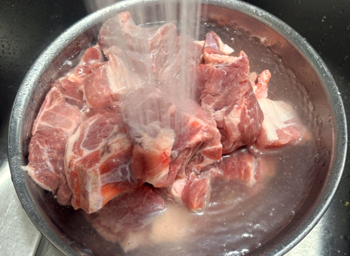 3. 핏기를 제거한 돼지갈비는 건져내 준비해 주세요.