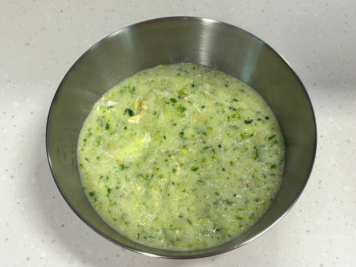 13. 수분은 사과즙 2팩 추가해 주었어요.(사과즙대신 육수를 사용하셔도 괜찮아요)