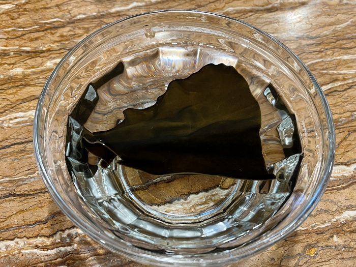 다시마를 물에 우려서 밥에 넣을 다시마 물을 만들어주세요.(밥물을 다시마 우린 물로 사용하면 밥에 반짝이는 윤기를 더해준답니다, 생략도 가능하세요)