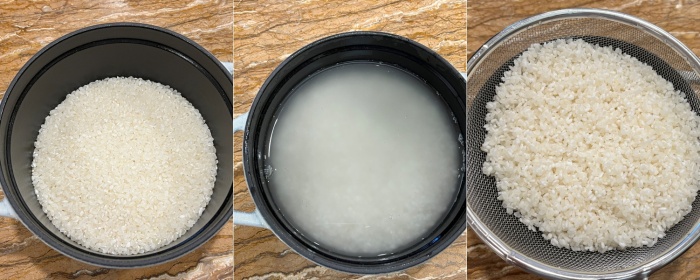 일반 솥밥을 할때와 마찬가지로 쌀은 3번 정도 세척한 후, 20-30분 체에 밭쳐서 불려 준비해 주세요.
