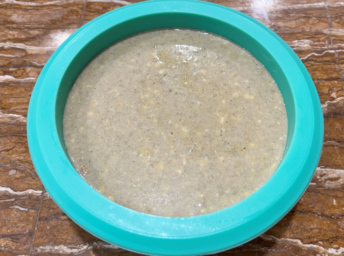 5. 섞어놓은 반죽을 용기에 담아주세요.