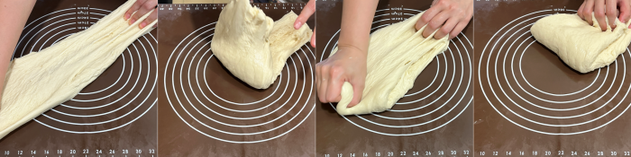 3. 어느 정도 잘 뭉쳐지면, 반죽을 빨래를 치대듯이 잡아당겨서 접고 다시 늘려주는 방법으로 반복해 주세요.(글루텐 생성에 도움을 준답니다)