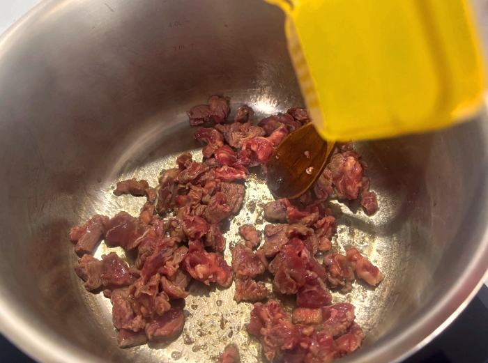 5. 예열된 냄비에 소고기를 볶아주세요.