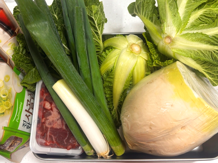 보통 봄동된장국을 많이 끓이는데요, 유셰프는 오늘 사골을 첨가해서 달큼한 봄동을 더 진하게 된장국으로 끓여보려고 해요. 맛있겠죠? 맛이 없을 수가 없답니다. 큭큭.