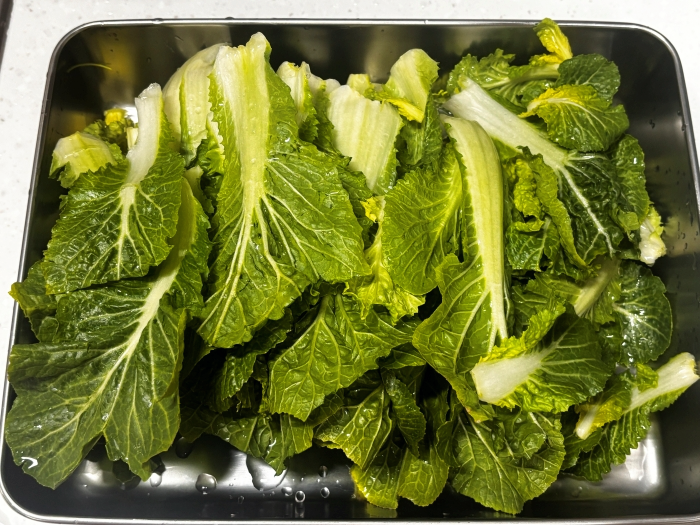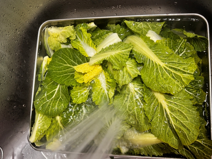 2. 한 장씩 떼어낸 봄동은 깨끗이 세척하여 흙과 이물질을 제거해 준비해주세요.