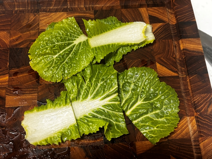 3. 봄동 낱장이 크다면 적당한 크기로 썰어주면 좋아요. 낱장이 크지 않다면 그대로 사용해도 괜찮아요.