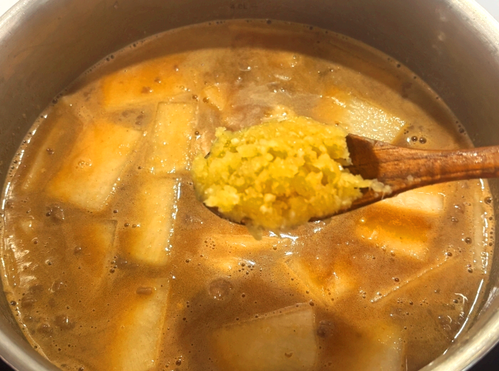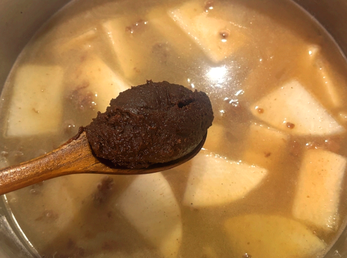 9. 분량의 된장을 풀어주세요.