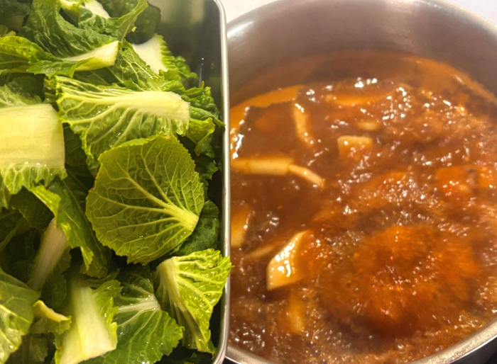 보통 봄동된장국을 많이 끓이는데요, 유셰프는 오늘 사골을 첨가해서 달큼한 봄동을 더 진하게 된장국으로 끓여보려고 해요. 맛있겠죠? 맛이 없을 수가 없답니다. 큭큭.