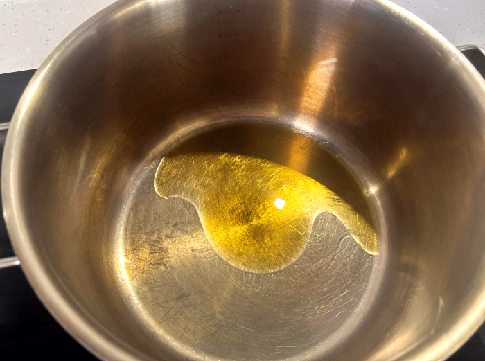 5. 냄비에 준비한 참기름을 둘러주고 예열할게요.