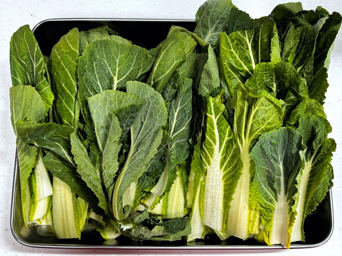 5. 건져낸 봄동배추는 찬물에 재빠르게 한번 헹구어 채반에 받쳐 물을 빼주세요.