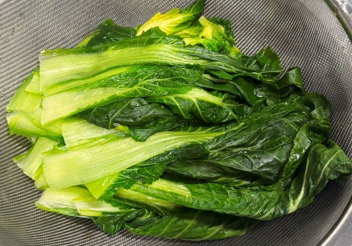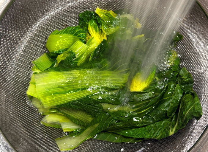 5. 건져낸 봄동배추는 찬물에 재빠르게 한번 헹구어 채반에 받쳐 물을 빼주세요.