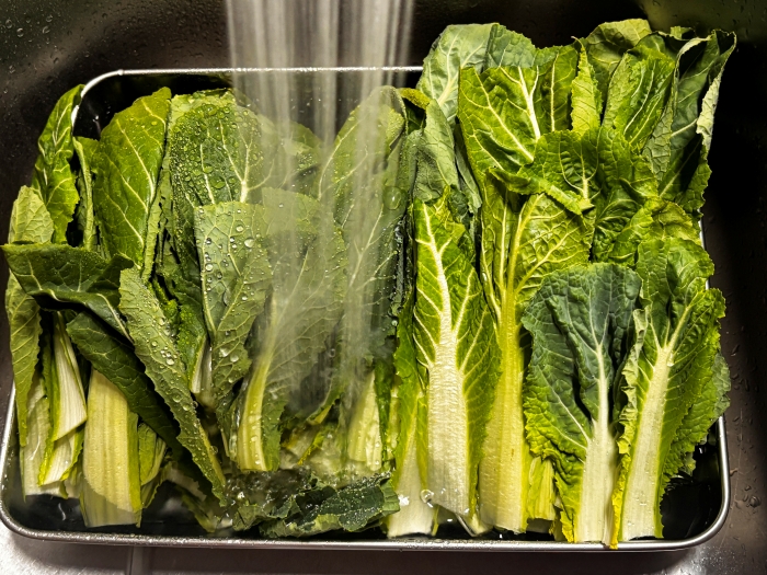 2. 다듬은 봄동배추를 물에 깨끗이 세척해 주세요.