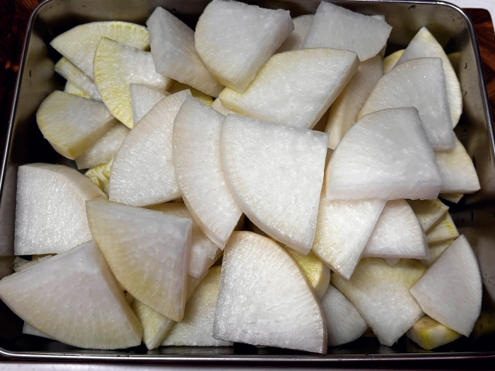 겨울엔 무가 수분이 많고 달아서 어떤 요리에 재료로 사용해도 천연 조미료 역할을 하는 것 같아요. 국을 끓여도 국물에 맛을 풍부하게 해 주고 조림에 재료로 써도 달큼함이 너무 맛있고요, 오늘 함께 만드는 김치류 섞박지를 해도 달큼한 무수분이 자박하게 나와서 얼마나 맛있는지 몰라요.