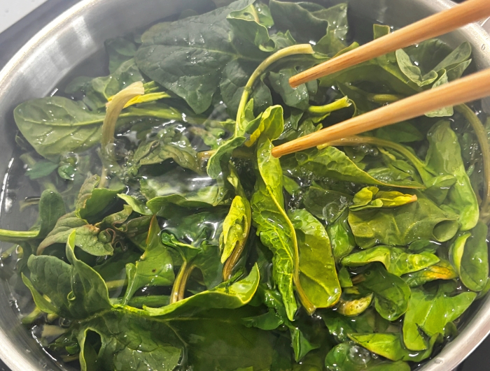 5. 데쳐서 건져낸 섬초는 재빨리 찬물에 담가서 열기를 식혀주세요.