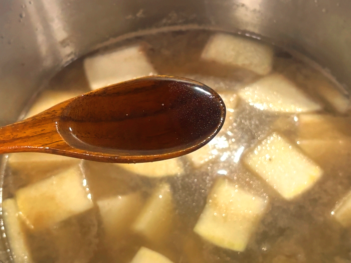 11. 물이 끓어오르면 준비한 참치액과 어간장을 넣어주세요.