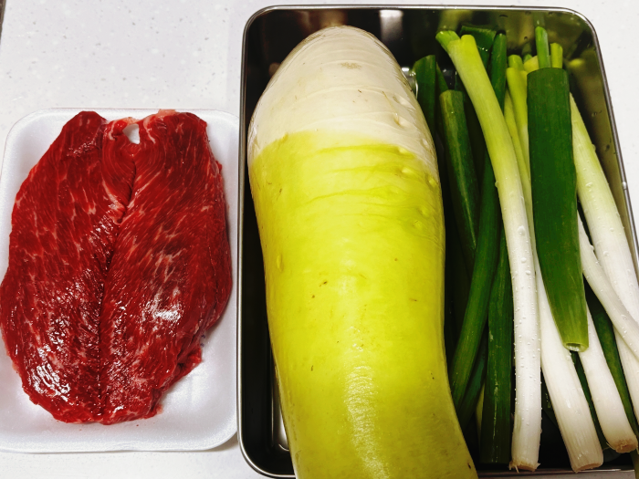 오늘은 맑은 소고기뭇국, 경상도식 탕국 같은 소고기뭇국을 끓여볼 건데요.