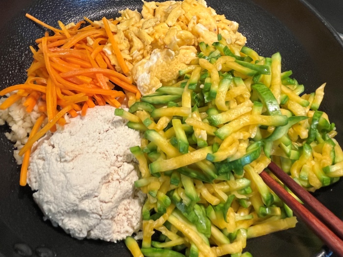 오늘 요리는 제가 정말 좋아하는 중국의 '춘빙(春餅, chūnbǐng: 중국 북방의 전통 음식인데 얇은 밀가루 전병에 여러 가지 볶음채소와 요리를 소스를 첨가해 쌈 싸서 먹는 요리)' 하고 비슷하고, 딤섬의 춘권과도 그리고 베트남의 바잉쎄오(Bánh xèo)와도 닮은 요리예요.