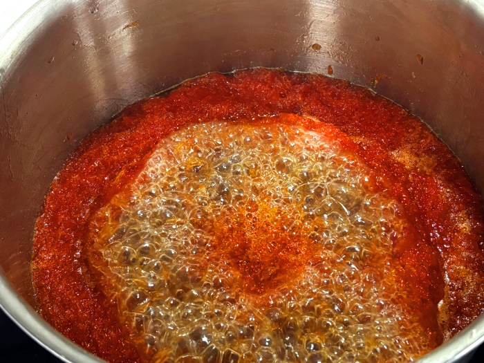8. 쨈이 바글바글 달콤 새콤한 향을 내며 끓고 있어요. 위에 떠오르는 거품은 살짝 걷어내주셔도 좋아요.