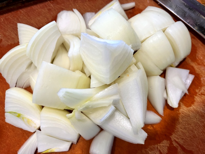 3. 양파는 전체 사이즈에 따라 적당하게 큼직한 느낌으로 썰어 준비해 주세요.(양파도 열이 가해지면 녹는 성질이 있으니 큼직하게 썰어주세요)