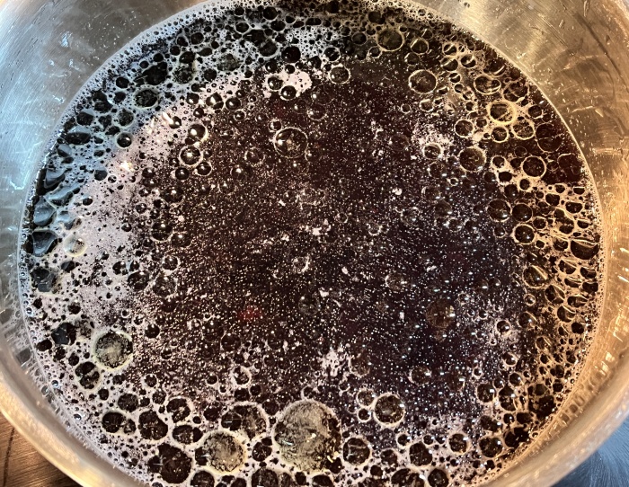 6. 물엿 넣어 한 번 더 끓이고 불에서 내려 참기름 넣어 섞어주세요.